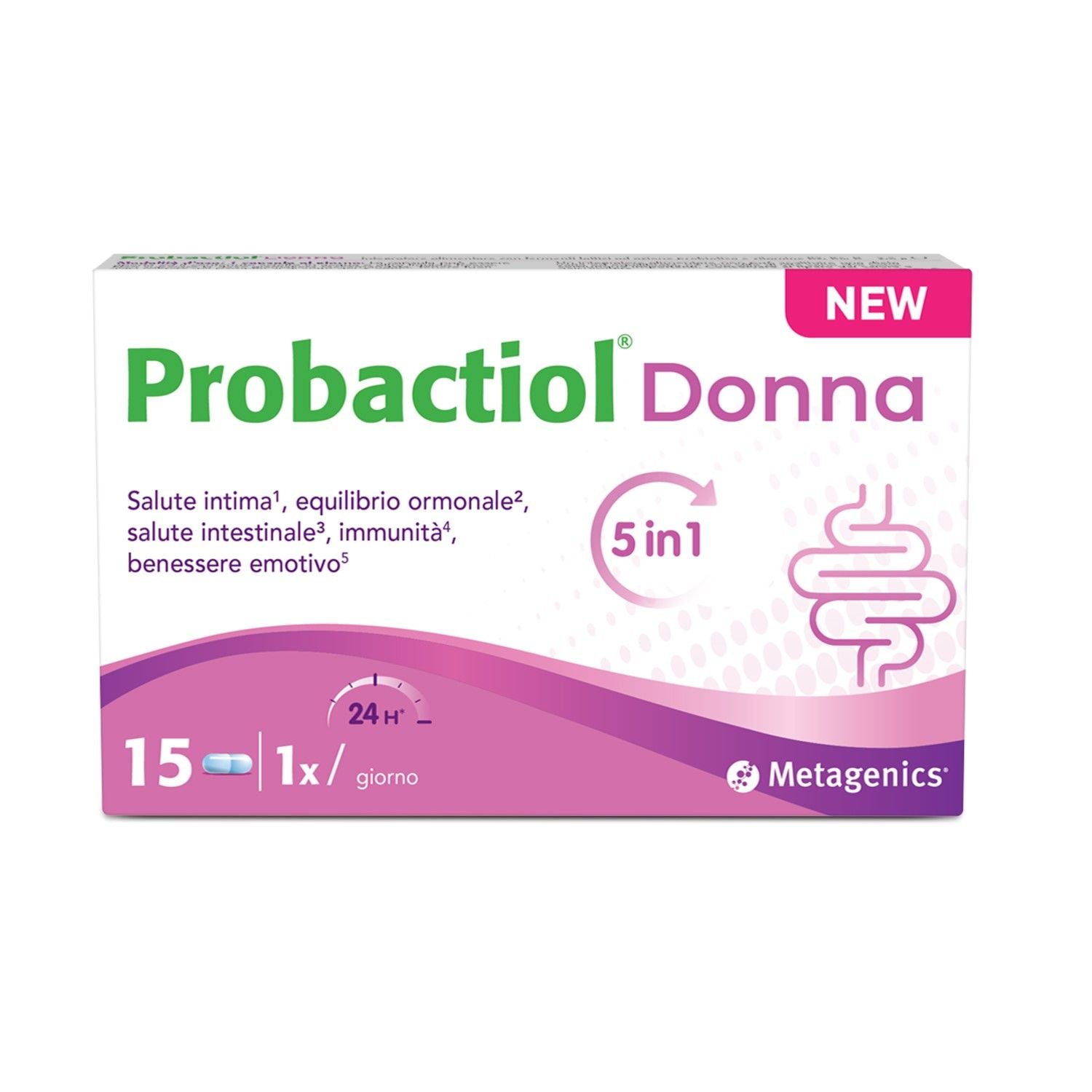 Probactiol® Donna contiene 4 miliardi di batteri vivi e vitali in una sola capsula. Probactiol® Donna è un complesso sinergico sviluppato per le donne per sostenere la salute intima. Contribuisce all’equilibrio delle mucose dell’apparato urogenitale femminile e dell’intestino (Vitamina B2), così come all’equilibrio ormonale (Vitamina B6). Il prodotto contiene 4 ceppi di fermenti lattici ad azione probiotica studiati specificamente per l’equilibrio della flora intestinale femminile. Questo integratore ottimizza l’immunità (Vitamina D) ed ha un effetto benefico sulla salute della pelle (Vitamina B2). Probactiol® Donna contribuisce al benessere emotivo (Vitamina B6).