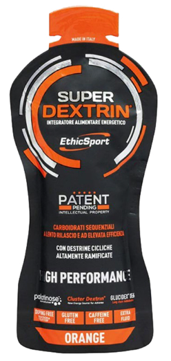 Super Dextrin in gel è un integratore alimentare energetico di nuova generazione. E' una miscela brevettata a base di carboidrati speciali, a lento rilascio, lunga durata e ad elevata efficienza. Contiene HBCD (destrine cicliche altamente ramificate), Palatinose, Destrine DE6 e DE18, per una cessione graduale e progressiva delle energie durante lo sport.