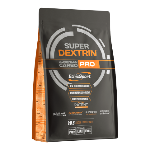 CARATTERISTICHE: SUPER DEXTRIN® PRO è un integratore alimentare energetico di nuova generazione con carboidrati in rapporto 1:0.8 (glu:fru), per massimizzare il flusso energetico. Il prodotto ha un efficace svuotamento gastrico, favorisce un elevato ingresso di carboidrati nell’organismo e permette un’ottimale distribuzione delle scorte energetiche. La speciale formula sfrutta la sinergia tra HBCD (Destrine Cicliche Altamente Ramificate = Cluster Dextrin® e SusCarb®), Maltodestrine DE6 e DE18, PalatinoseTM e Fruttosio. Super Dextrin® PRO è senza caffeina e non contiene glutine. La formula è brevettata e doping free tested*.